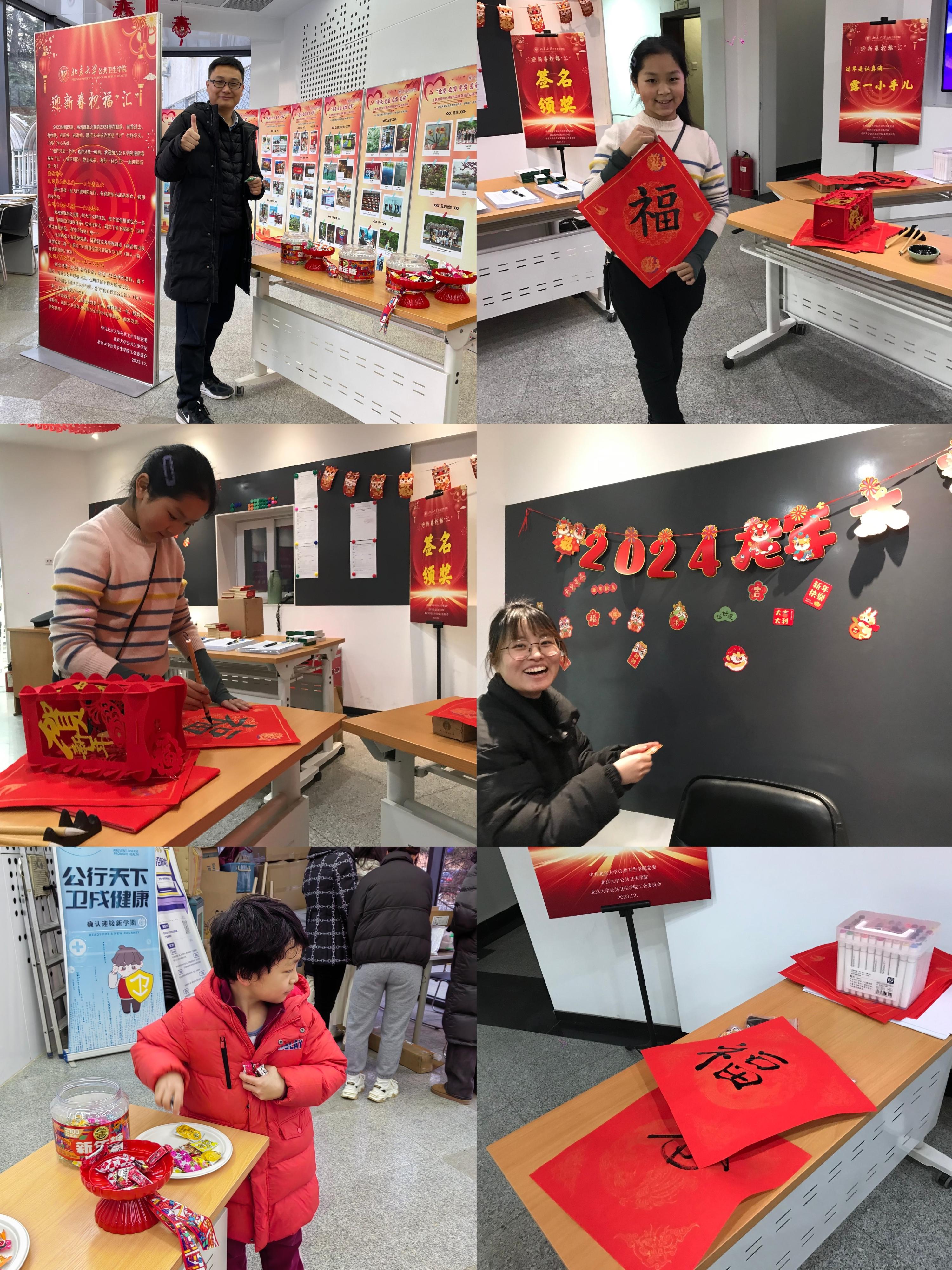 活动持续近两周,每天清晨的准时“投喂”持续着糖果的“甜”;红包猜谜区的红包随着时间推移一个个被揭开、取走,把象征中国工会团结统一的大大的“中”“工”二字清晰显示在眼前;“露一小手儿”书法迎春写福字、对联、迎春贴、马克笔绘画区域最热闹,老师、同学还有小朋友纷纷展示才艺,甚至还有约稿——一位喜欢书法的同学被约稿写春联,她现场泼墨挥毫,对联被取走的一瞬间,幸福洋溢……