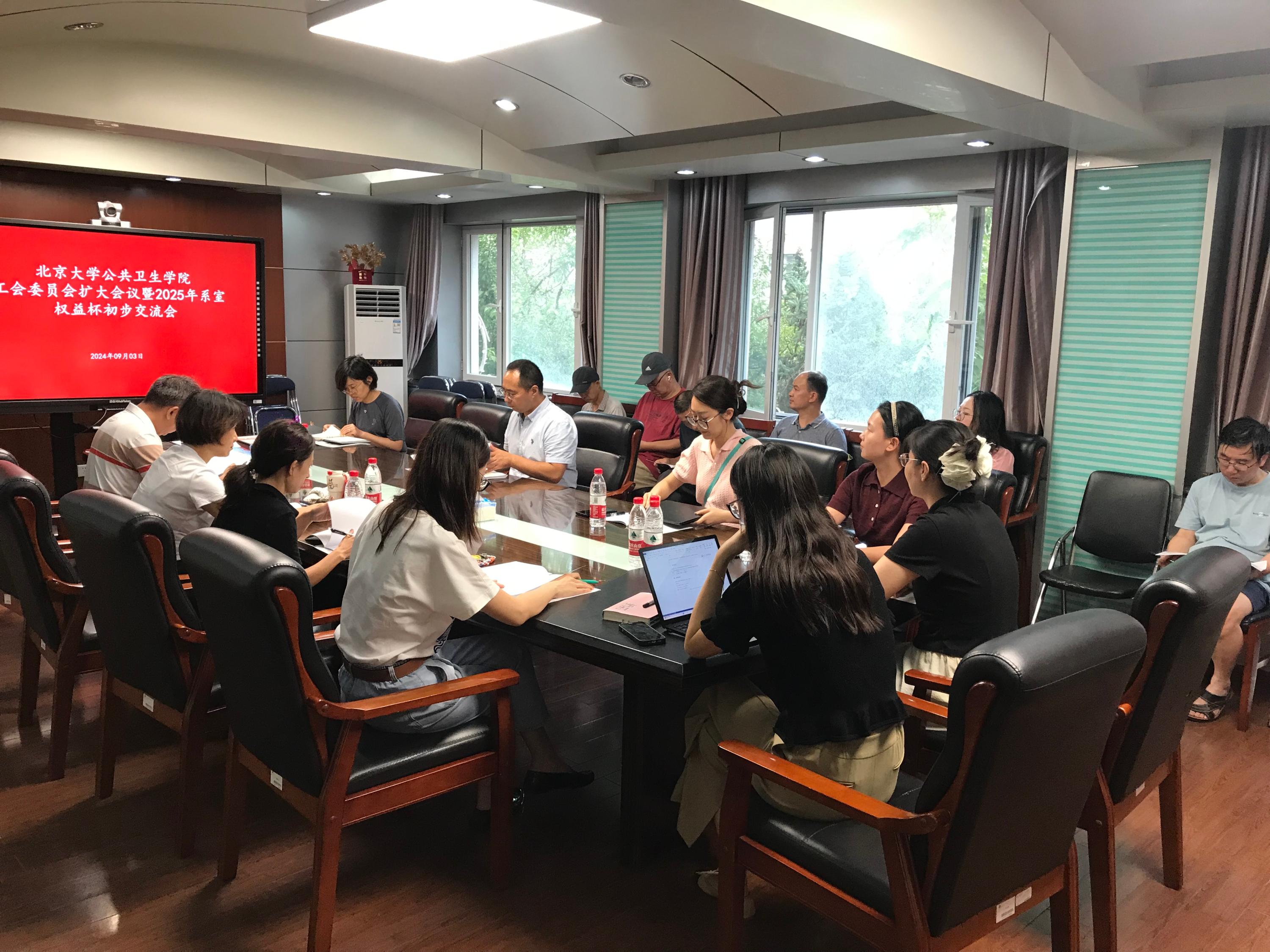 2024年9月3日下午,北京大学公共卫生学院工会委员会扩大会议暨2025年系室权益杯活动初步交流会在公卫学院220会议室召开。学院工会委员及各系室工会小组负责同志20余人参加了会议。