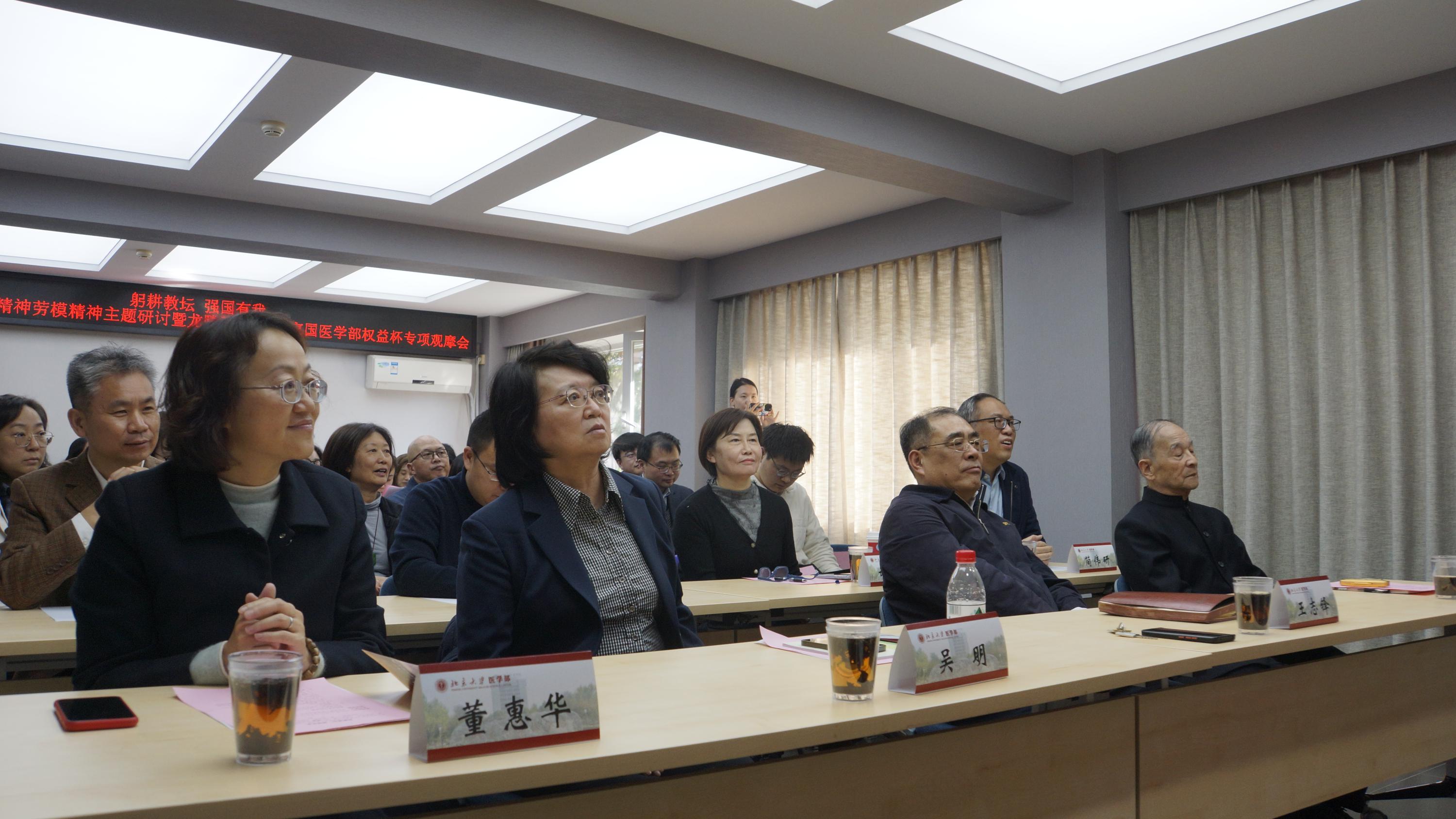11月21日下午,北京大学公共卫生学院卫生政策与管理学系(以下简称卫管系)工会小组“弘扬和传承教育家精神、劳模精神”主题研讨暨“龙行龘龘 欣欣家国”2024年医学部工会系统第二十届“权益杯”专项观摩活动在卫管系235会议室顺利举行。作为医学部工会第二十届“权益杯”专项活动,活动邀请了原公共卫生学院院长、卫管系主任陈育德教授,原医学部主任助理、公共卫生学院副院长、卫管系主任吴明教授,原公共卫生学院副院长、卫管系副主任王志锋教授做主题发言。医学部工会副主席董惠华,北京大学肿瘤医院党委副书记、工会主席许秀菊,公共卫生学院党委副书记、工会主席苏鸿,公共卫生学院院长助理、卫管系主任简伟研,卫管系副主任傅虹桥,医学部工会办公室主任张凤云以及来自医学部各二级单位的工会领导和工会同仁参加了本次活动并进行了全程观摩。活动由卫管系工会组长陈博主持。