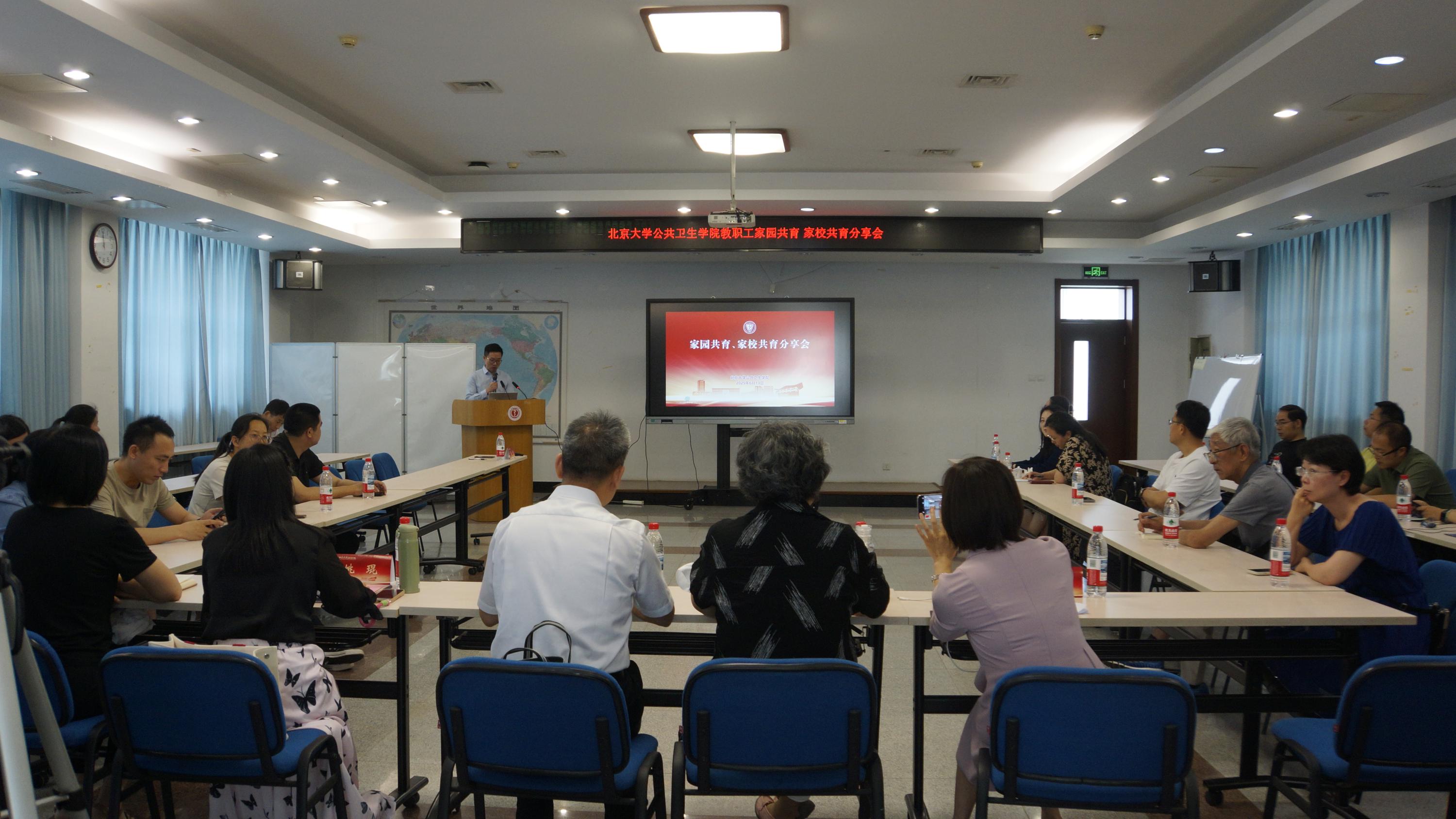 6月13日中午,活动在公卫学院树华楼卫三教如期举办。本次讲座特邀北京大学附属小学大队辅导员、一级教师姚琨,北京大学医学部幼儿园副园长、高级教师、海淀区学科带头人、学前督学宾晓亮分别从幼儿教育、幼小衔接、小学教育实践案例出发分享解读家园共育、家校共育的方式方法;分享会同时邀请北京大学儿童青少年卫生研究所副所长董彬作为嘉宾主持,以他多年对儿童青少年健康成长的研究为基础,结合活动分享专业研究成果。公卫学院党委副书记工会主席苏鸿、护理学院党委副书记工会主席张进瑜、北医幼儿园名誉园长潘燕生、公卫学院及兄弟学院、二级单位教职工等30余人参会。