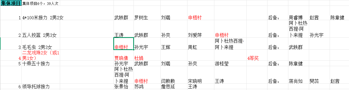 17、5月24日上午7点50分,北京大学医学部第62届田径运动会在医学部田径运动场开幕。公卫学院21位教职工(小教员:赵茜、樊蕊、王佳)参与入场式、团体操展示,顺利完成三次彩排,获得优秀组织奖;15人18人次参加16项个人比赛,5个参赛项目获得名次(王涛男丁八百米第二名、实心球掷远第六名,周虹女丙五十米托球跑第三名,申梧村男乙立定跳远第六名,殷春杰女乙四百米第七名);30人次(不含后备)参加全部六项集体项目,其中贾晓倩、杜娟参赛的二龙戏珠获得第四名。报名工作由文体委员肖倩倩负责,全体学院工会委员、工会组长参与本次运动会筹备组织工作。